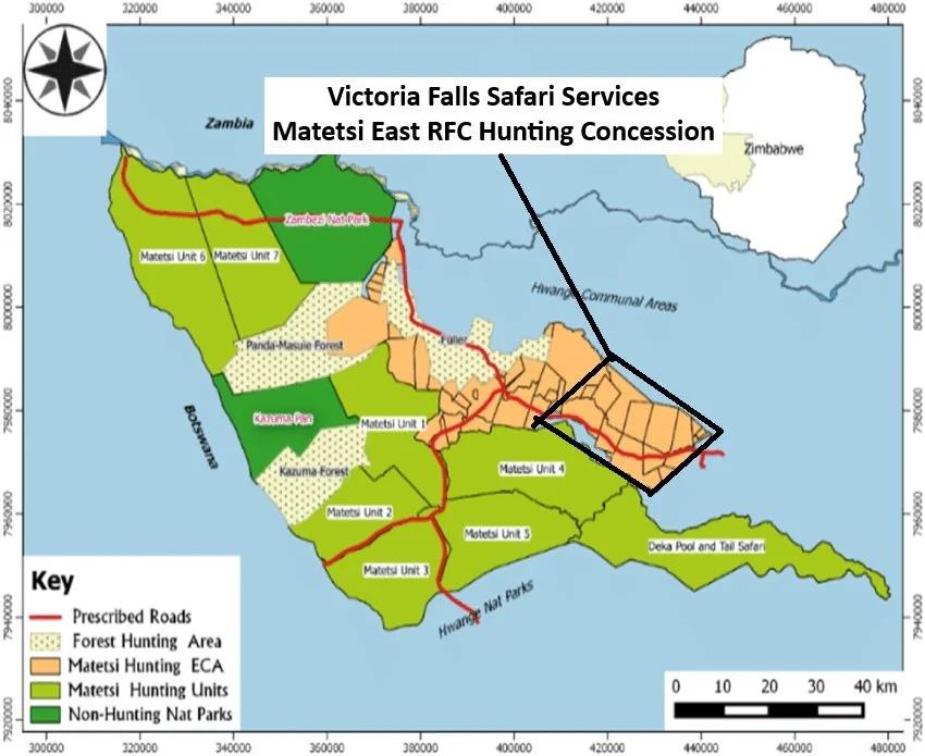 The ZPWMA Matetsi Safari Areas are widely known as some of Africa’s finest hunting areas. In 2023 we partnered with the rural farm group adjoining the parks units and are in the process of making Matetsi East Rural Farm Conservancy a go to destination! We have a very nice permanent camp on site and are installing solar pumps in several locations across the area to provide lifesaving water to our game and in turn draw significantly more game across the spectrum into the area. We are currently offering elephant, Lion and Leopard hunts in this area and as we go along feel that our plains game will be very good as well due to abundant water. Our prices are extremely competitive right now as we are promoting this area heavily and want clients to come and see the excellent work we are doing within the hunting area and the community at large. Matetsi East RFC is only 125 kilometers from Victoria Falls International Airport making travel to your hunt very affordable and easy.